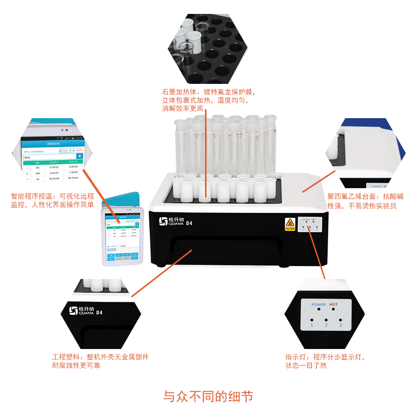 D4智能石墨消解儀采用高純石墨材料作為加熱體,包裹式加熱,效率更高,溫度均勻性更好。多孔設(shè)計(jì),輕松實(shí)現(xiàn)樣品的批量處理,是您樣品消解的好伴侶。