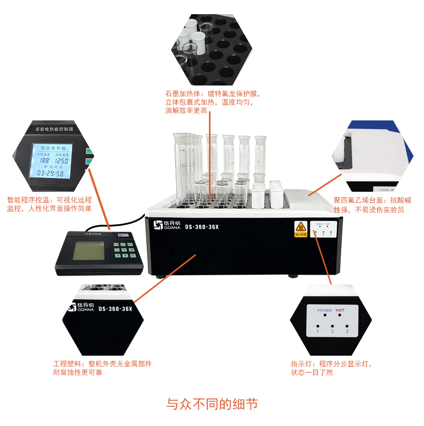 DS-360-36X線控石墨消解儀(36位)主要用于實(shí)驗(yàn)室樣品前處理中進(jìn)行加熱、趕酸、消解的設(shè)備,比實(shí)驗(yàn)電熱板效率高、成本消耗低,石墨消解儀采用高純石墨作為加熱體,包裹式加熱,溫度均勻充分消解樣品。多孔的設(shè)計(jì),輕松實(shí)現(xiàn)了批量的處理樣品,拋棄傳統(tǒng)單一的消解模式,是您樣品消解的必備實(shí)驗(yàn)室裝備之一。