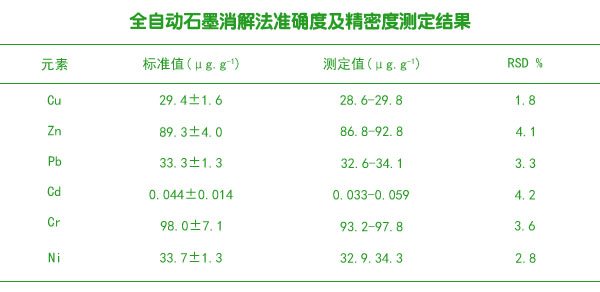 全自動(dòng)石墨消解法準(zhǔn)確度及精密度測定結(jié)果