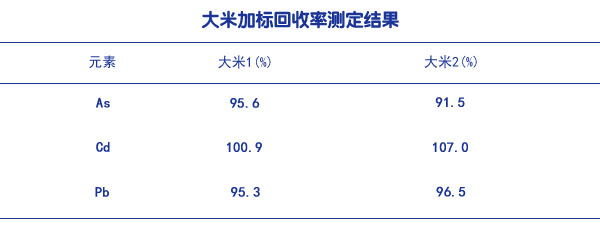 大米標(biāo)準(zhǔn)樣品加標(biāo)回收率測定結(jié)果