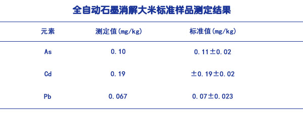 全自動石墨消解大米標(biāo)準(zhǔn)樣品測定結(jié)果