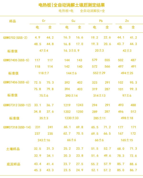 2018年7月土地標(biāo)準(zhǔn)又頒發(fā)了,《農(nóng)用地標(biāo)準(zhǔn)》、《建設(shè)用地標(biāo)準(zhǔn)》證明了,我國對土地利用越來越重視,當(dāng)前比較嚴(yán)重的是土壤重金屬,重金屬富集起來對環(huán)境、人類都造成巨大的影響。文中使用陶瓷加熱板與全自動消解儀作用前處理的消解設(shè)備研究幾種酸消解體系對土壤和底泥(水沉積物)樣品消解的效果,對土壤和底泥金屬元素分析為實驗室選用不同的消解設(shè)備作參考。