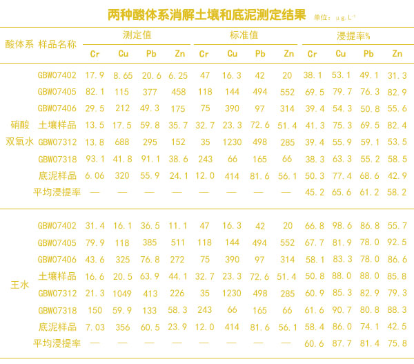 兩種酸體系消解土壤和底泥測定結(jié)果