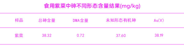 食用紫菜中砷不同形態(tài)含量的結(jié)果