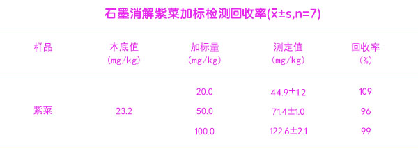 石墨消解紫菜加標(biāo)檢測回收率結(jié)果