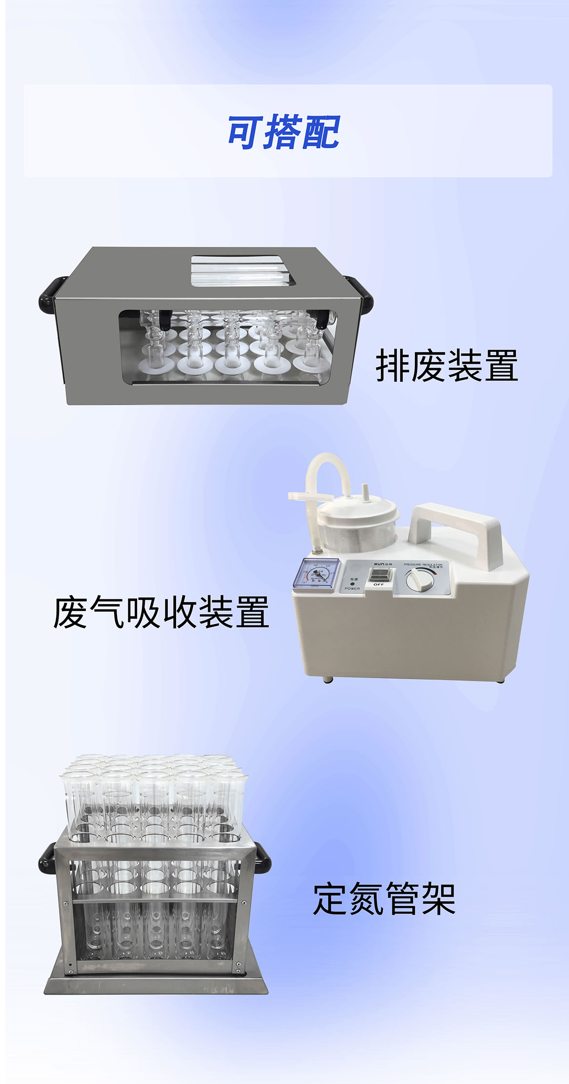 可選配廢氣吸收裝置,無(wú)需外接水流,對(duì)實(shí)驗(yàn)過(guò)程中的酸性氣體、有害異味氣體進(jìn)行吸附消除。