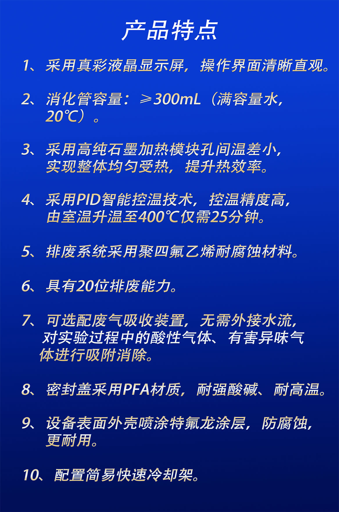 采用PID智能控溫技術(shù),控溫精度高,由室溫升溫至400℃僅需25分鐘。