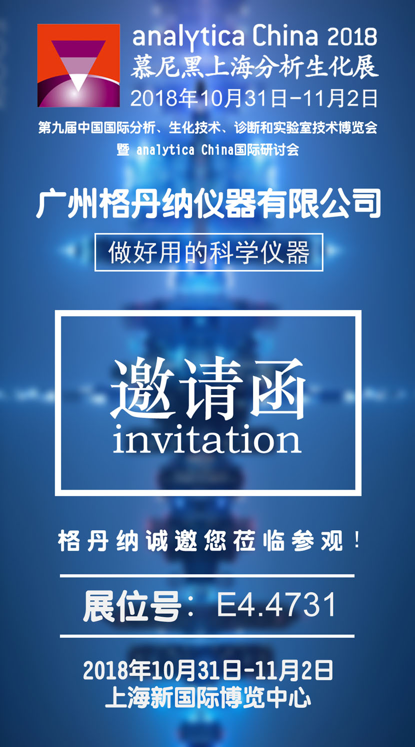 第九屆analytica China 2018格丹納以樣品前處理設(shè)備展現(xiàn):DS-72全自動消解儀、DS-360系列智能石墨消解儀、N-12全自動氮吹濃縮儀、HT系列實驗室電熱板。專業(yè)的實驗室前處理設(shè)備三天與現(xiàn)場觀眾零距離接觸,打造實驗室智能化、自動化實驗室方案服務(wù),屆時歡迎大家前來參觀指導(dǎo)。