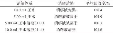 表2 不同消解體系時的回收率(n=3)