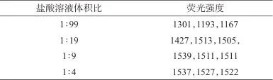 表3 不同體積比的鹽酸溶液的熒光強度(n=3)